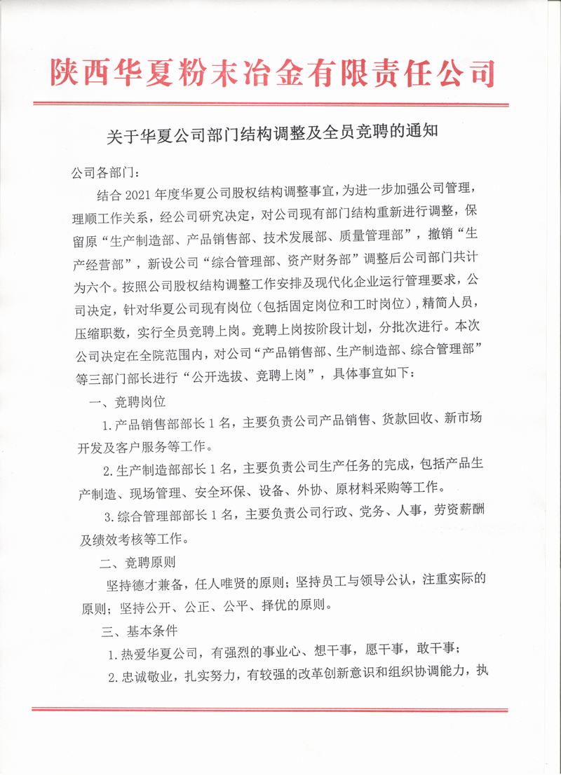 華夏公司部門(mén)結(jié)構(gòu)調(diào)整及全員競(jìng)聘的通知