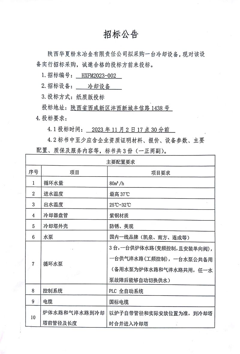 陜西華夏粉末冶金有限責任公司廢舊設(shè)備處置公告