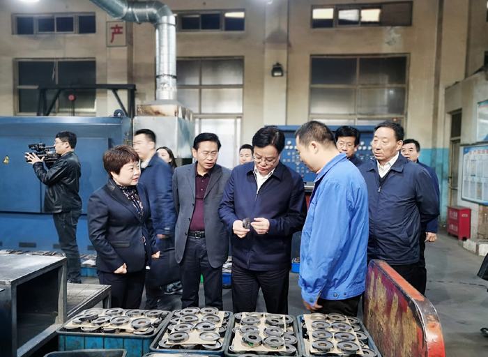 省機(jī)械院黨委書記、院長(zhǎng)王云平、華夏公司總經(jīng)理左鵬軍、副總經(jīng)理?xiàng)盥敱蟮葞ьI(lǐng)調(diào)研組一行參觀了公司壓制成型車間、燒結(jié)生產(chǎn)車間及精加工車間,并就公司生產(chǎn)經(jīng)營(yíng)、市場(chǎng)開拓、新品研發(fā)、技改環(huán)保等方面情況進(jìn)行了匯報(bào)。汪文展主席詳細(xì)詢問了公司粉末冶金生產(chǎn)流程、新技術(shù)新產(chǎn)品研發(fā)、市場(chǎng)配套客戶及三季度生產(chǎn)經(jīng)營(yíng)運(yùn)行情況。汪文展主席強(qiáng)調(diào),華夏公司要緊抓產(chǎn)品研發(fā)技術(shù)前端優(yōu)勢(shì),克服疫情及外部環(huán)境影響,緊抓當(dāng)前市場(chǎng)發(fā)展機(jī)遇,四季度力爭(zhēng)產(chǎn)業(yè)經(jīng)濟(jì)發(fā)展再上新臺(tái)階。調(diào)研快結(jié)束時(shí),汪主席細(xì)致詢問公司在后續(xù)發(fā)展上存在那些問題或困難需要解決。院長(zhǎng)王云平表示,華夏公司目前正處于發(fā)展爬坡期,公司將在設(shè)備技改提升及新品研發(fā)上下大功夫,希望市、區(qū)工業(yè)及科技部門在政策扶持和項(xiàng)目資金上能給予公司發(fā)展助力。汪主席表示,市區(qū)各部門將會(huì)大力扶持華夏公司粉末冶金產(chǎn)業(yè)發(fā)展,持續(xù)為企業(yè)發(fā)展保駕護(hù)航。